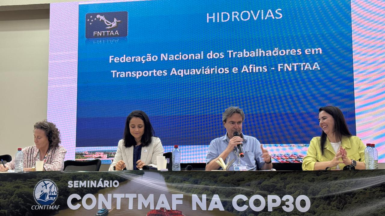 A Federação Nacional dos Trabalhadores em Transportes Aquaviários e Afins - FNTTAA participou do seminário sobre Transição Justa na COP30 promovido pela CONTTMAF, realizado em Belém (PA) no dia 10 de novembro.