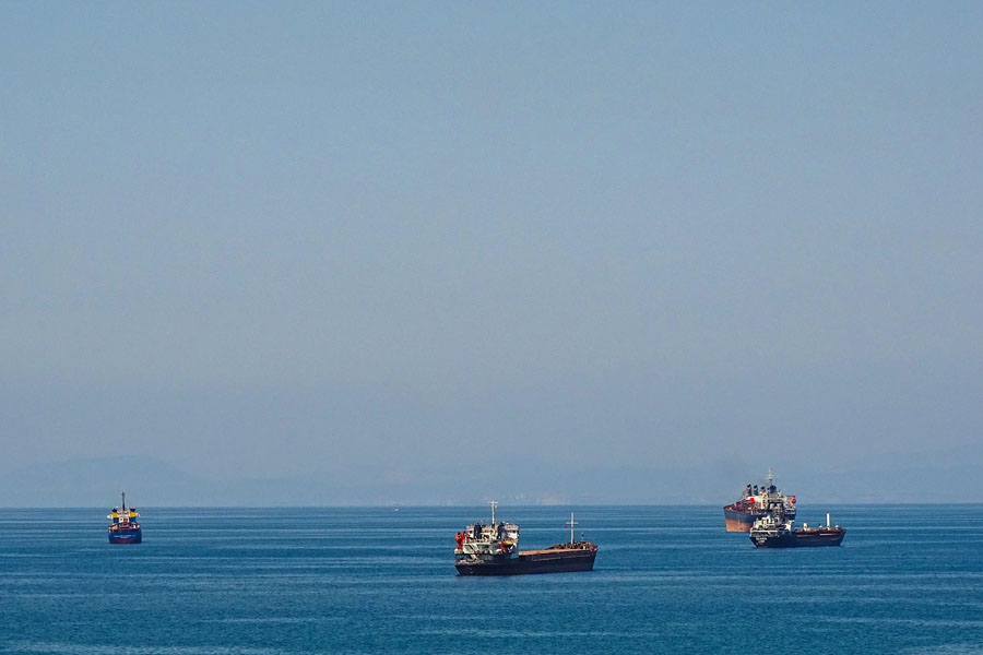 Combustíveis marítimos de baixo carbono ganham incentivo na Europa. Na imagem: Quatro navios de carga transitam no oceano azul (Foto: Pixabay)